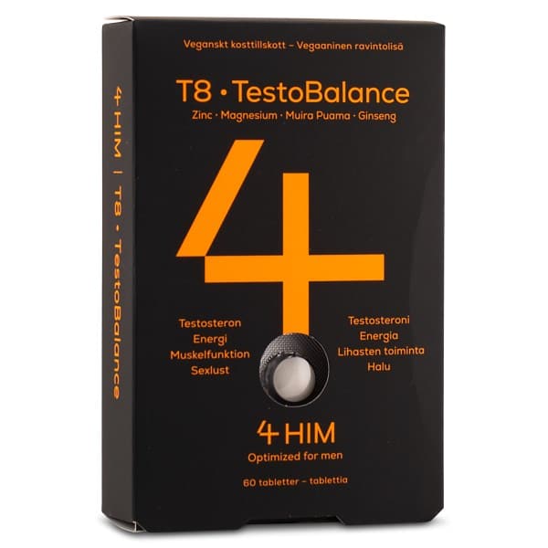 Oplev 4 Him T8 TestoBalance, et nøje udviklet kosttilskud til mænd. Dette tilskud indeholder ingredienser som ginseng, zink, magnesium, vitamin B6 og vitamin D. Zink hjælper med at opretholde normale hormonniveauer, mens magnesium og vitamin D understøtter normal muskelfunktion. Vitamin B6 og magnesium bidrager også til at reducere træthed og udmattelse. For yderligere fordele indeholder T8 TestoBalance også Fenugreek-ekstrakt (bukkehorn) og Muira puama.