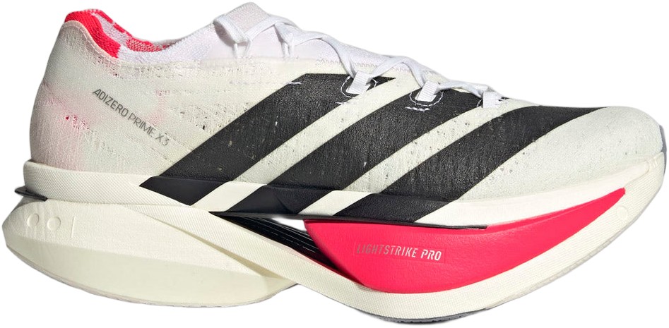 Adidas ADIZERO PRIME X3 STRUNG Løbesko kombinerer banebrydende teknologi med letvægtsdesign for maksimal fart og komfort. Med en tredobbelt Lightstrike Pro mellemsål på 50 mm i hælen og en innovativ carbonplade med ENERGYRODS sikrer skoen fremragende frem