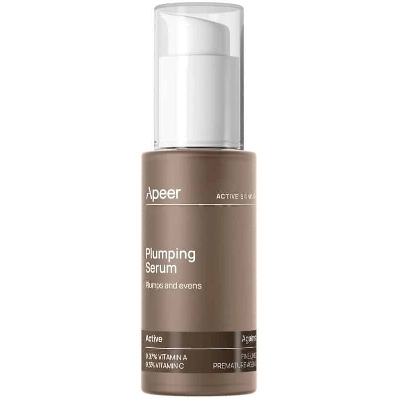 Apeer Plumping Serum er et serum beriget med vitamin A, B3, C og E, som hjælper med at modarbejde hudens naturlige ældning. Den lette gelkonsistens forbedrer fine linjer og rynker, gør huden blødere og forbedrer hudens elasticitet. Ved daglig brug udjævne