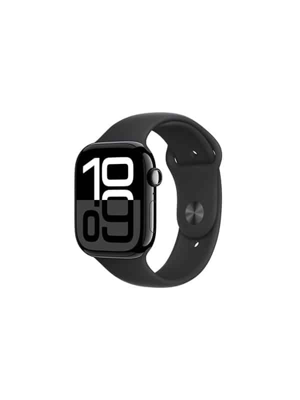 Apple Watch Series 10 GPS + Cellular 46mm – Jet Black Aluminium Case with Black Sport Band – S/M