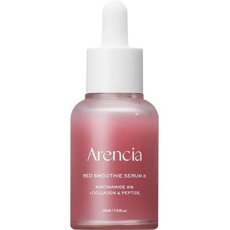 Arencia Red Smoothie Serum 8 er et serum med 8 % niacinamid, som sammen med kollagen og peptider kan bidrage til give en strålende glød og en mere ungdommelig hudtekstur. Dette serum er udviklet til at understøtte hudens naturlige revitalisering og forbed