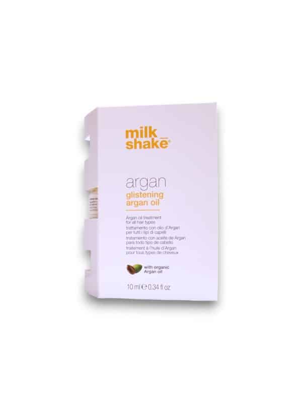 Milk Shake Argan Hair Oil Treatment 10 mlMilk Shake Argan Hair Oil Treatment er en intens plejende og let hårolie, specielt udviklet til at styrke, fugte og beskytte håret. Beriget med økologisk arganolie, som er rig på antioxidanter, vitaminer og essenti