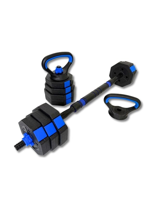 – Justerbart vægtsæt på 15 kg til hjemmetræning- 2-i-1 design: håndvægte og vægtstang- Ideelt til begyndere og let øvede- Vægtskiver giver mulighed for progressiv belastning- Velegnet til helkropstræning- Kompakt og pladsbesparende løsning- Nemt at juster