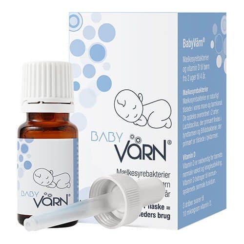 BabyVärn er et dagligt kosttilskud med mælkesyrebakterier og vitamin D til børn fra 2 uger til 4 år.