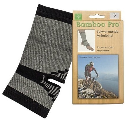 Selvvarmende ankelbind med bambus trækul – Str. S. Reducerer hævelse, ømhed, og stivhed i fodleddet.