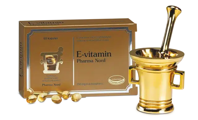 E-Vitamin Pharma Nord er klare, bløde gelatinekapsler med renset sojaolie og naturligt d-a-tocopherol i en mængde, der svarer til 290 mg (432 internationale enheder) E-vitamin.