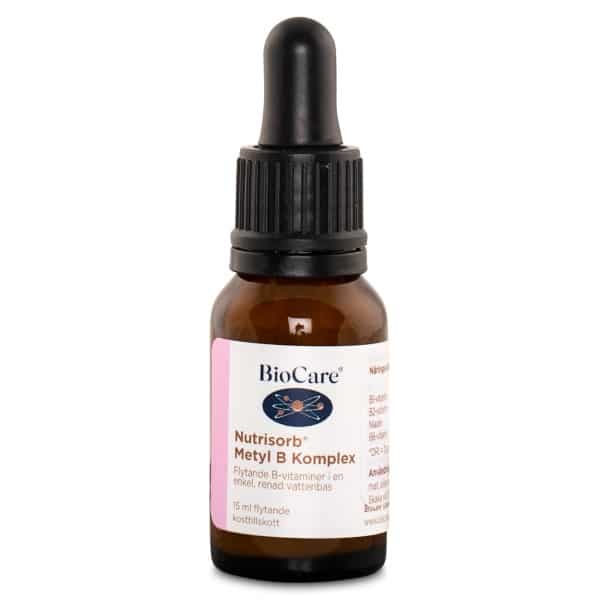 BioCare Nutrisorb Methyl B Komplex er et kraftfuldt B-kompleks i flydende form. Dette tilskud indeholder essentielle B-vitaminer i deres mest naturlige og aktive form, som kroppen let kan optage. Det indeholder bl.a. folat i form af methylfolat, som er den form, der findes i fødevarer som f.eks. grønne grøntsager. Det indeholder også vitaminerne B2, B3, B5, B6 og B12, som bl.a. bidrager til at reducere træthed og udmattelse. BioCare Nutrisorb Methyl B Komplex har en ren og allergivenlig vandbasis og er let at dosere og indtage. Tilskuddet er vegansk.