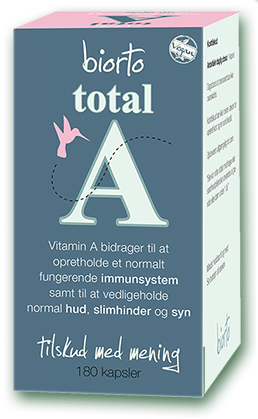 Søger du et kosttilskud, der kan bidrage til et normalt immunsystem samt vedligeholde hud, slimhinder og syn? Biorto Total A kan være det rette valg. Dette kosttilskud indeholder både A-