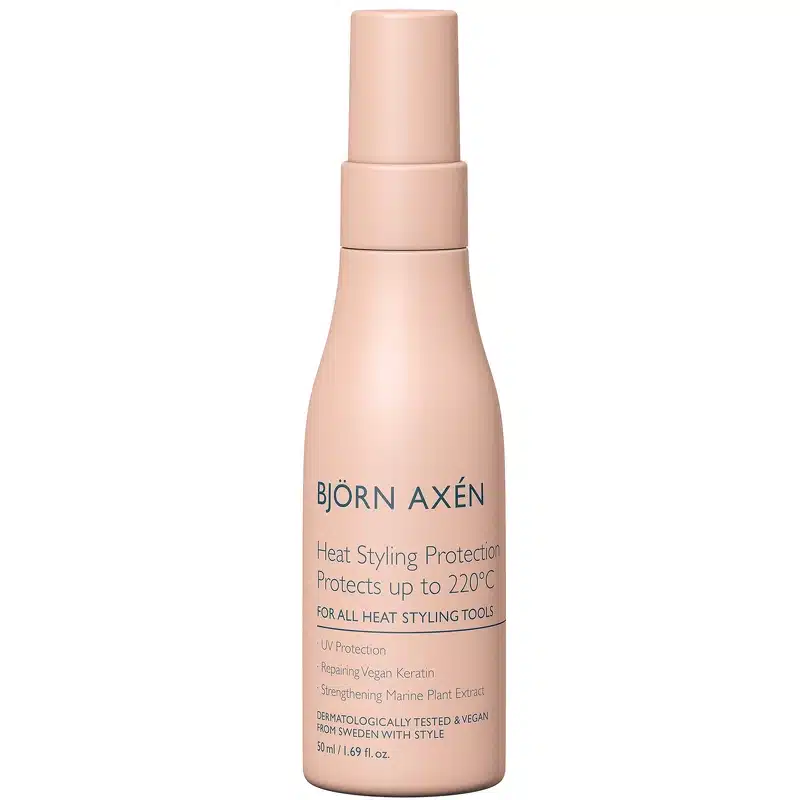 Björn Axén Heat Styling Protection Spray er en varmebeskyttende spray velegnet til alle hårtyper. Indeholder solsikkefrøolie der giver naturlig UV-beskyttelse og Vitamin B5 der plejer håret samt giver en smuk glans. Varmebeskyttende op til 220°C hvilket