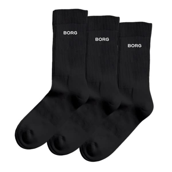 Björn Borg Essential Crew Socks 3-pak er komfortable og stilfulde strømper med perfekt pasform. Toppen er ribbet for at sikre, at de bliver siddende, hvilket gør dem ideelle til både træning og hverdag. Fremstillet af en blanding af blødtstrikket bomuld og genanvendt polyester.