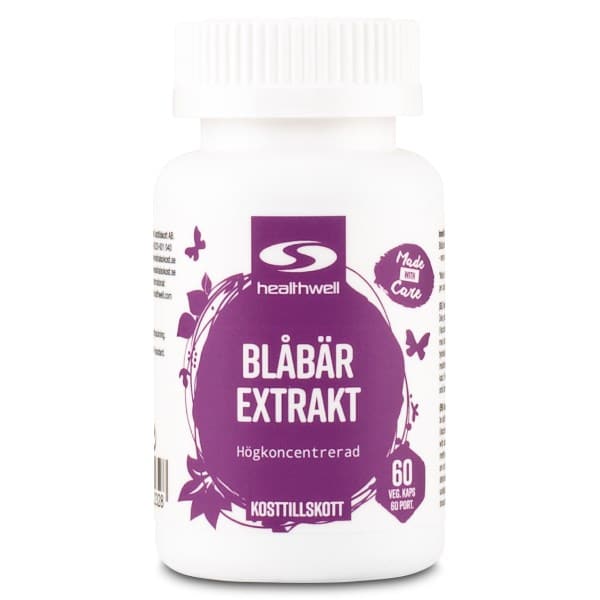 Med hjælp fra Healthwell Blåbær Ekstrakt kan du nyde alle de gode egenskaber fra blåbær uden at skulle købe dem, eller gå ud og plukke bærrene selv! Dette kosttilskud er naturligt fremstillet fra ægte bær – en dåse indeholder over 1 kg friske blåbær, hvilket svarer til cirka 23 gram blåbær per kapsel. Kapslerne indeholder to typer af højkvalitets blåbærekstrakt, der er rigt på flavonoider, vitaminer og mineraler. Blåbær er for eksempel rige på betakaroten, som er en forløber for A vitamin og nødvendig for, at syn og slimhinder fungerer normalt. En daglig maxdosis af Healthwell Blåbær Ekstrakt giver hele 1000 mg blåbærekstrakt, hvilket gør dette tilskud meget højtdoseret.
