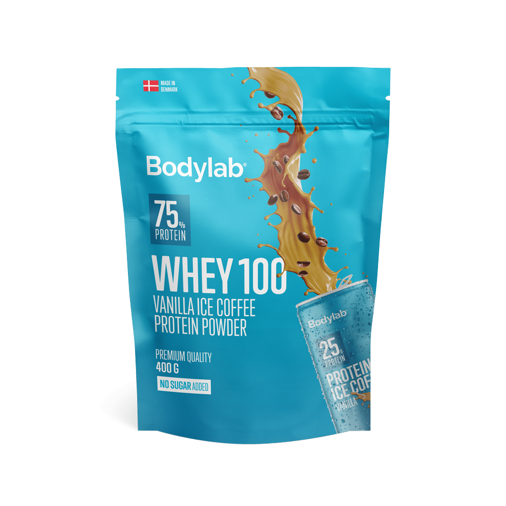 Bodylab Whey 100 Vanilla Ice Coffee dansk valleprotein med mild iskaffesmag (400g)Bodylab Whey 100 Vanilla Ice Coffee er et danskproduceret valleproteinpulver udviklet til dig, der ønsker en kombination af højkvalitets valleprotein og den velkendte smag