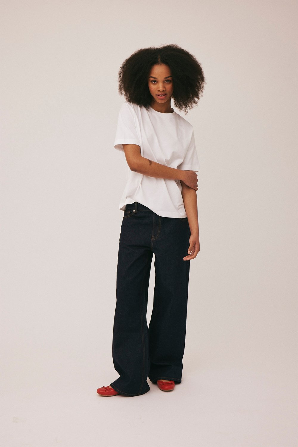 Jeans fra Magasin du Nord Collection i den blødeste kvalitet af 100% økologisk bomuld med GOTS-certificering. Bukserne er en klassisk ‘5 pocket’-model med vide bukseben, knap- og lynlåslukning i den mellemhøje talje samt ‘Baggy Fit. Et par skø
