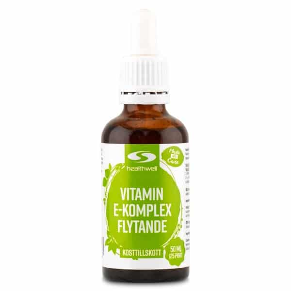 Healthwell E-vitamin Komplex Flydende er et alsidigt tilskud af antioxidanten E-vitamin, som hjælper mange af kroppens funktioner. E-vitamin er mest kendt for sin antioxiderende virkning, det vil sige at det modvirker nedbrydning af cellerne som følge af forskellige belastninger. Da dette tilskud er flydende, er det meget nemt at dosere og anvende, enten som det er eller fortyndet i forskellige drikke. Da E-vitamin har antioxiderende egenskaber, kan det også anvendes til at forhindre, at olier og fedtsyrer oxideres, f.eks. i hudplejeprodukter med olie som basis.