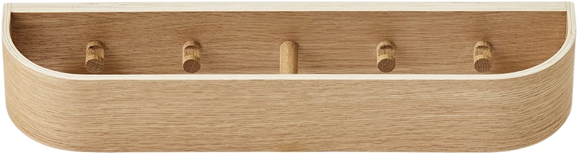 Med sin omhyggelige kombination af blidt afrundede kanter, varmt træ og diskret funktionalitet tilbyder Epoch Clothes Rack strømlinet opbevaring til både store og små rum. Det vægmonterede stativ er designet til Audo af Nina Bruun og fremstillet i naturli