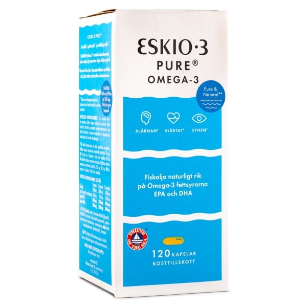 Eskio-3 Pure® er et kosttilskud med fiskeolie, som indeholder den nyttige fedtsyre omega-3. Omega-3 er naturligt rig på fedtsyrerne EPA og DHA, som bidrager til hjertets normale funktion. Eskio-3 Pure® indeholder 160 mg EPA og 100 mg DHA per g.