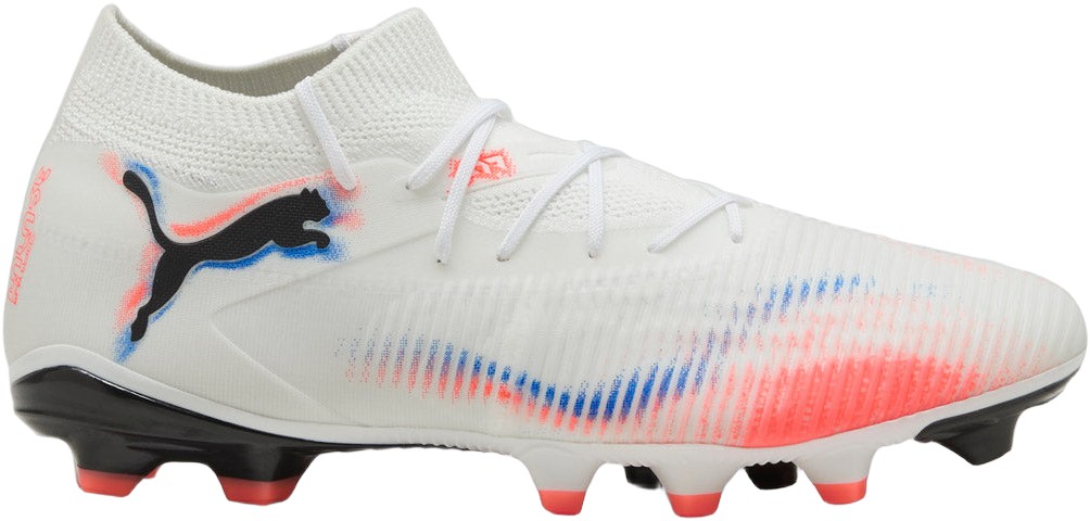 PUMA FUTURE 8 MATCH FG/AG fodboldstøvler kombinerer innovativ teknologi med maksimal kontrol og smidighed. Overdelen i letvægtsmesh og strækbart strik sikrer en tilpasset og stabil pasform med FUZIONFIT360, mens GripControl-prægede linjer forbedrer boldko
