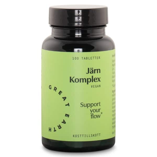 Great Earth Jernkompleks er et jerntilskud med tilsat vitamin C. Jern bidrager til en normal blodproduktion, en normal ilttransport og modvirker træthed. C-vitamin øger optagelsen af jern. Kvinder i den fødedygtige alder har et lidt højere behov for jern.