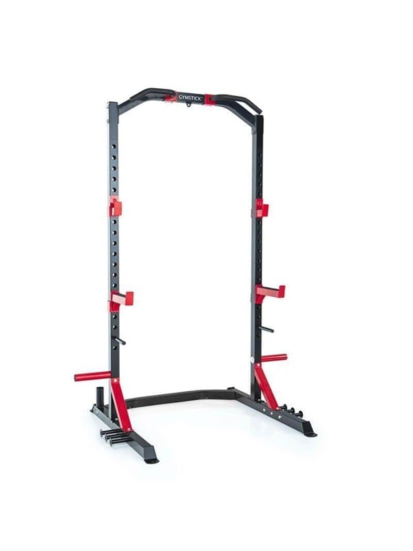 Fristående halv-rack af høj kvalitet sælges med et par j-kroge, spotting-arme, vægtstangsholder og vægtopbevaringsstifter. Spotting-arme vil give selvtilliden til at skubbe længere uden at bekymre dig om skader eller skader. Næsten uendelig fleksibilitet