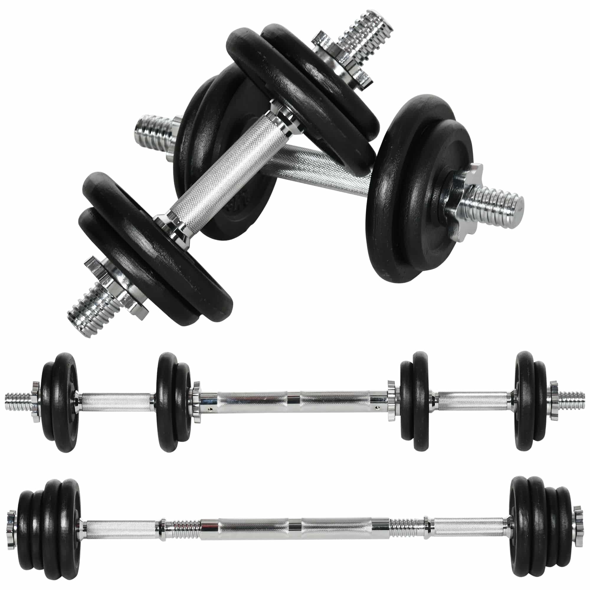 Håndvægt, vægtstang, 2-i-1, 20 kg, 8 vægtskiver, rustfrit stål, sort, 95 x 16 x 16 cm