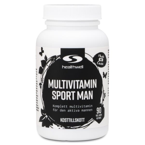 Healthwell Multivitamin Sport Man er et multivitamin, der er særligt udviklet til den aktive mands behov, med vitaminer, mineraler og planteekstrakter. Her får du blandt andet en ekstra høj dosis zink og C-vitamin sammen med ekstrakt af rødbede og grøn te. To kapsler om dagen er nok til at sikre indtaget af disse næringsstoffer.