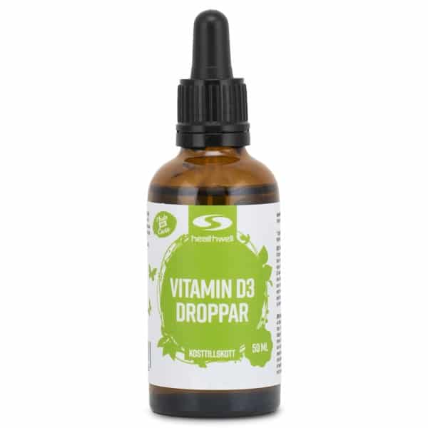 Endelig kan hele familien bruge det samme praktiske D-vitamin! Healthwell Vitamin D3 Dråber er et praktisk flydende D-vitamin med en nem pipette, opløst i olivenolie for optimal optagelse. Dosér nemt 300 – 2400 IE per dag, hvor én dråbe giver 300 IE.