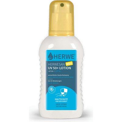 Herwesan UV 50+ lotion er en vandfast og hurtigttørrende solspray, som yder god beskyttelse mod UV-A og UV-B stråling. Sprayen virker nærende på huden med sit indhold af glycerol og vitamin E. Velegnet til alle, der opholder sig i kraftigt sollys i forbin