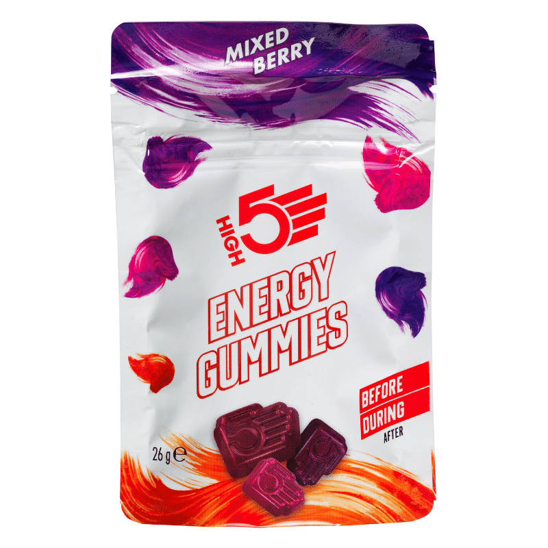 High5 Energy Gummies er frugtvingummi i lommestørrelse med smag af blandede bær, tilsat Vitamin B6.