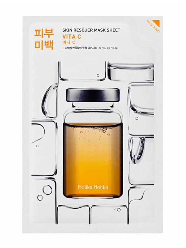 Holika Holika Skin Rescuer Mask Sheet Vita C er beriget med C-vitamin for at lysne og give energi til huden. Masken hjælper med at reducere træthed, forbedre hudtonen og fremme en sund og strålende glød. Perfekt til at revitalisere træt hud, tilfører den
