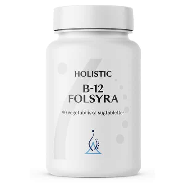 Vitamin B12 samt Vitamin B9 (mere kendt som folsyre) har en række vigtige funktioner i cellerne. Blandt andet er vitaminerne vigtige ved dannelsen af de røde blodlegemer. Holistics B12 Folsyre er i letoptagelig methylcobalamin. Produktet er en god sugetablet med syrlig smag.