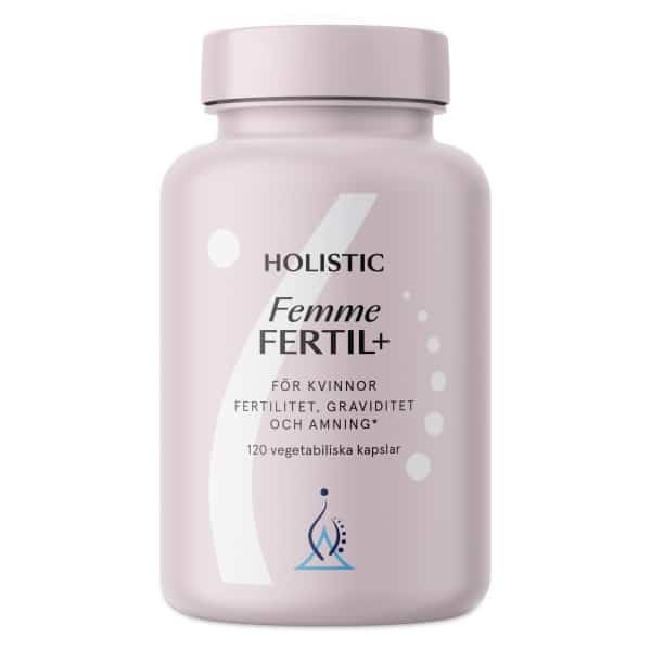 Holistic Femme Fertil+ er et omfattende kosttilskud særligt udviklet til kvinder og indeholder vitaminer og mineraler for at fremme fertilitet og give næring både før, under og efter graviditeten. Femme Fertil+ er udviklet med det formål at forbedre sundhed og næringsstatus i denne vigtige periode i livet. Indholdet består af nøje udvalgte vitaminer og mineraler, der er skånsomme mod maven og let optages af kroppen.