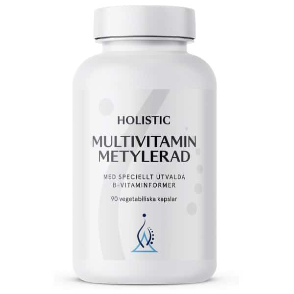 Holistic Multivitamin Methyleret er et multivitamintilskud med et højtdoseret indhold. Kapslerne indeholder også cholin, citrusbioflavonoider og særligt udvalgte kilder til vitamin B12, vitamin B6, vitamin B2 samt folinsyre. Alle disse vitaminer er vigtige for kroppens metaboliske reaktioner og bidrager til reguleringen af stofskiftet. Holistic Multivitamin Methyleret indeholder også vitamin A, vitamin C og vitamin D, som bidrager til immunforsvarets normale funktion. Vitamin A bidrager desuden til normal hud, og vitamin C sammen med folinsyre hjælper med at mindske træthed og udmattelse. Kapslen er vegetabilsk og fremstillet af pullulan fra majs. Med et multivitamintilskud kan du sikre dit daglige indtag af vitaminer.