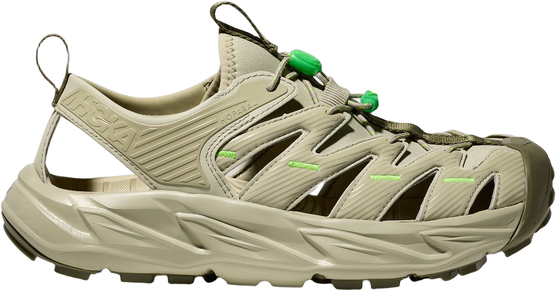 Hopara er en sand Outdoor opdagelsesrejsende, der nemt navigerer gennem ethvert terræn, der er vådt eller tørt. Denne sko er designet gennem HOKA-linsen og vil blæse andre bjergsandaler ud af vandet. Hopara har en syntetisk overdel med strategiske udskæri