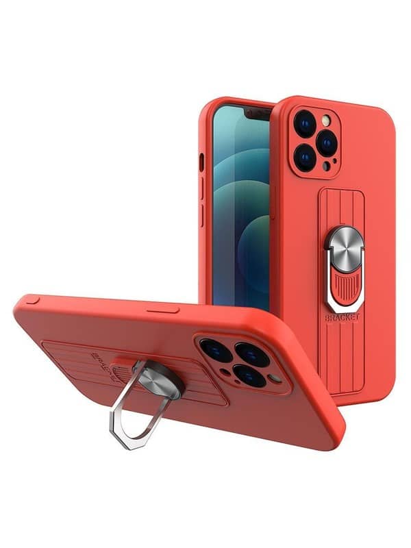 Hurtel Ring Case silicone case with finger holder and stand for Xiaomi Redmi Note 11 Pro Red