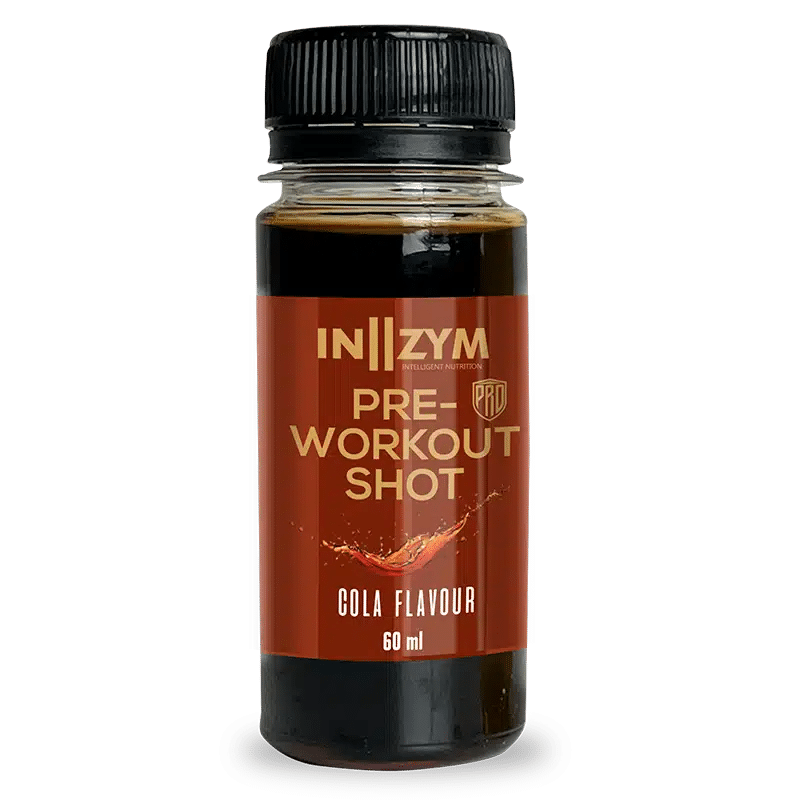 IN2ZYM PWO Shot – Cola (60 ml) Energirige pre workout shots fra IN2ZYM. Højt koffeinindhold Lækre smagsvarianter Hvert shot indeholder hele 200 mg koffein og aminosyrerne; beta-alanin, l-arginin, l-citrullin og l-carnitin. Anbefalet daglig dosis 30 ml (½ flaske). Anbefalet daglig dosis må ikke overskrides. Kosttilskud må ikke træde i stedet for en varieret og sund kost. Bør opbevares uden for små børns rækkevidde. Næringsindhold Næringsindhold NÆRINGSINDHOLD 1 PORTION (30 ML) % RI* Beta-alanin 1.000 mg L-Arginin 1.000 mg L-Citrullin 500 mg L-Carnitin 250 mg Koffein 100 mg Vitamin B6 0,7 mg 50 % Vitamin B12 (cyanokobolamin) 1,25 µg 50 % *Dagligt referenceindtag (RI) af vitaminer og mineraler for voksne. Kosttilskud med aminosyrer, koffein og vitaminer, med smag af cola. Indeholder sødestoffer, indeholder højt koffeinindhold (100 mg pr. anbefalet daglig dosis). Bør ikke indtages af børn og gravide. Ingredienser: Vand, beta-alanin, L-arginin, L-citrullin, L-carnitin, koffein, konserveringsmiddel (E211, E202), aroma, farvestof (E150c), sødestof (sukralose), vitamin B6 (pyridoxinhydrochlorid), vitamin B12 (cyanokobolamin).