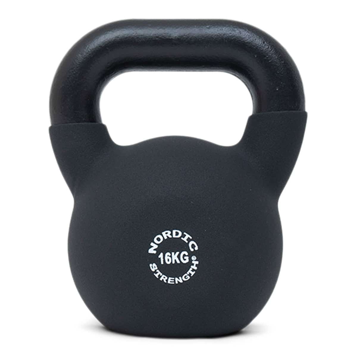 Vores 16 kg Kettlebell fra Nordic Strength er det ideelle træningsredskab til dig, der ønsker at træne med høj kvalitet til en overkommelig pris. Fremstillet af solidt støbejern og beklædt med neopren, beskytter den