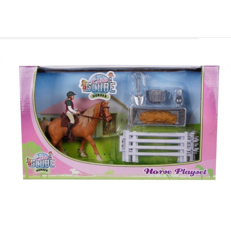 Her får du et hestesæt til gården komplet med alt det tilbehør, der ses på billedet i den fine Kids Globe kvalitet. 🙂