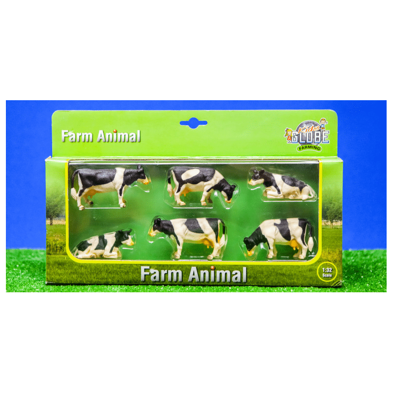 Her får du 6 stk. sort/hvide køer, hvoraf 2 stk. ligger ned, til gården i den fine Kids Globe kvalitet. 🙂