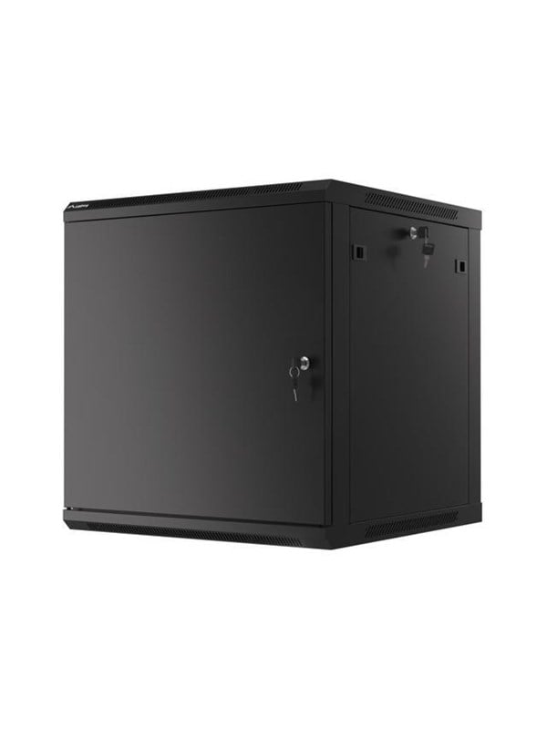 Rack kabinet, flad pakke, vægmonterbar, sort, RAL 9004, 12U, 19″