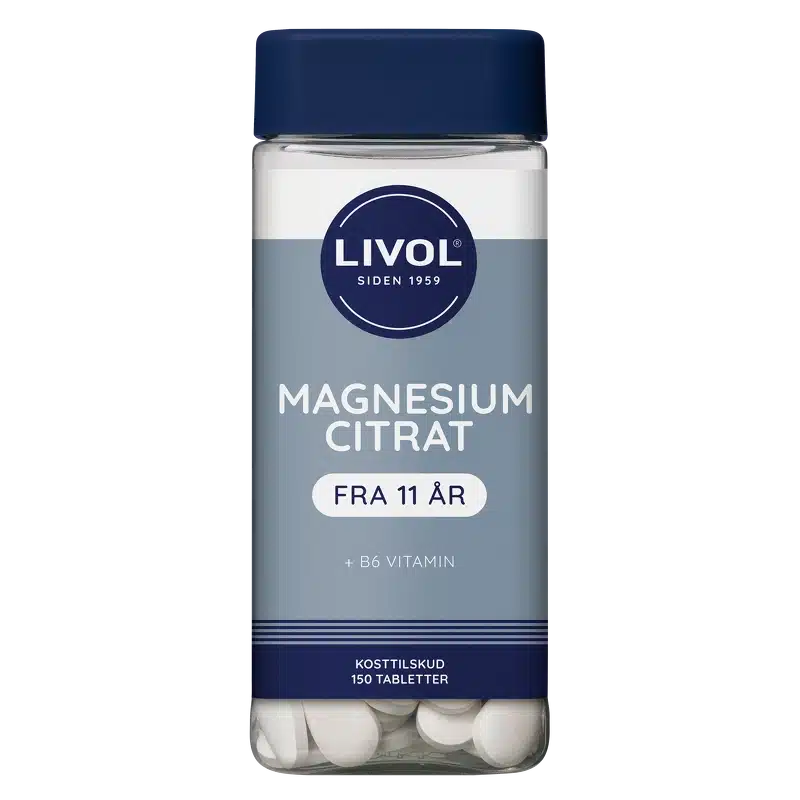 Livol MagnesiumCitrat + B6 Vitamin er et kosttilskud til voksne, som indeholder magnesium og B6-vitamin. Magnesium bidrager til normal nerve- og muskelfunktion, samt til at vedligeholde normale knogler. Både magnesium og B6-vitamin bidrager ligeledes til