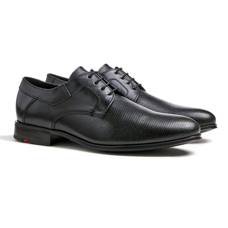 Disse derbysko er fremstillet af sort læder og imponerer med deres trendy stil. Med disse sko får du både et klassisk og et elegant look. Den elastiske gummisål virker støddæmpende, når du går. Den indvendige lædersål sikrer også en høj grad af komfort, mens snøringen og det trendy prægede læder sikrer et originalt look og den perfekte pasform. Disse læder- og tekstilforede sko er komfortable og åndbare, hvilket du vil elske. ØVRE MATERIALE; Præget læder INDVENDIGT MATERIALE: Læder/tekstil MATERIALE INDERSÅL: Læder SÅL: Gummisål