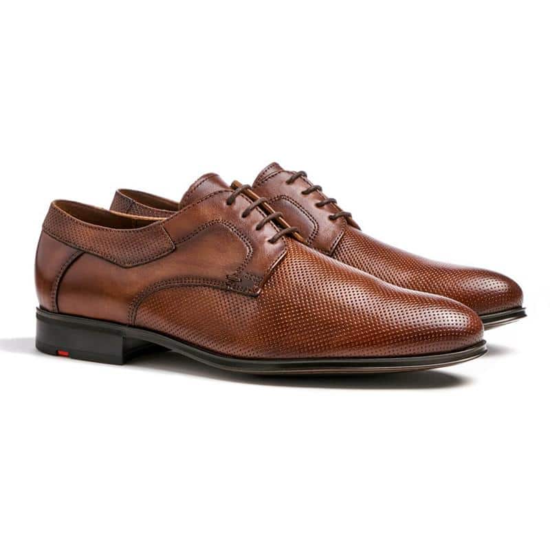 Disse derbysko er fremstillet af brunt læder og imponerer med deres trendy stil. Med disse sko får du både et klassisk og et elegant look. Den elastiske gummisål virker støddæmpende, når du går. Den indvendige lædersål sikrer også en høj grad af komfort, mens snøringen og det trendy prægede læder sikrer et originalt look og den perfekte pasform. Disse læder- og tekstilforede sko er komfortable og åndbare, hvilket du vil elske. ØVRE MATERIALE; Præget læder INDVENDIGT MATERIALE: Læder/tekstil MATERIALE INDERSÅL: Læder SÅL: Gummisål