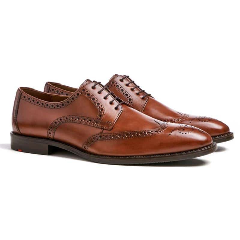 KOMPROMISLØS DESIGN OG KVALITET LLOYD Business – model LUCIEN Disse høj kvalitet herresko i italiensk kalveskind giver din maskuline stil et ekstra pift. Det karakteristiske design med Lyra perforeringer, syninger og lette nuancer vidner om elegance og stil. Perfekt supplement til enhver mands elegante business garderobe! Denne model findes også i sort Type: Brogue sko Øvre materiale: Kalveskind Indvendigt mateirla: Læder foring Sål: Lædersål, gummieret Farve: Brun