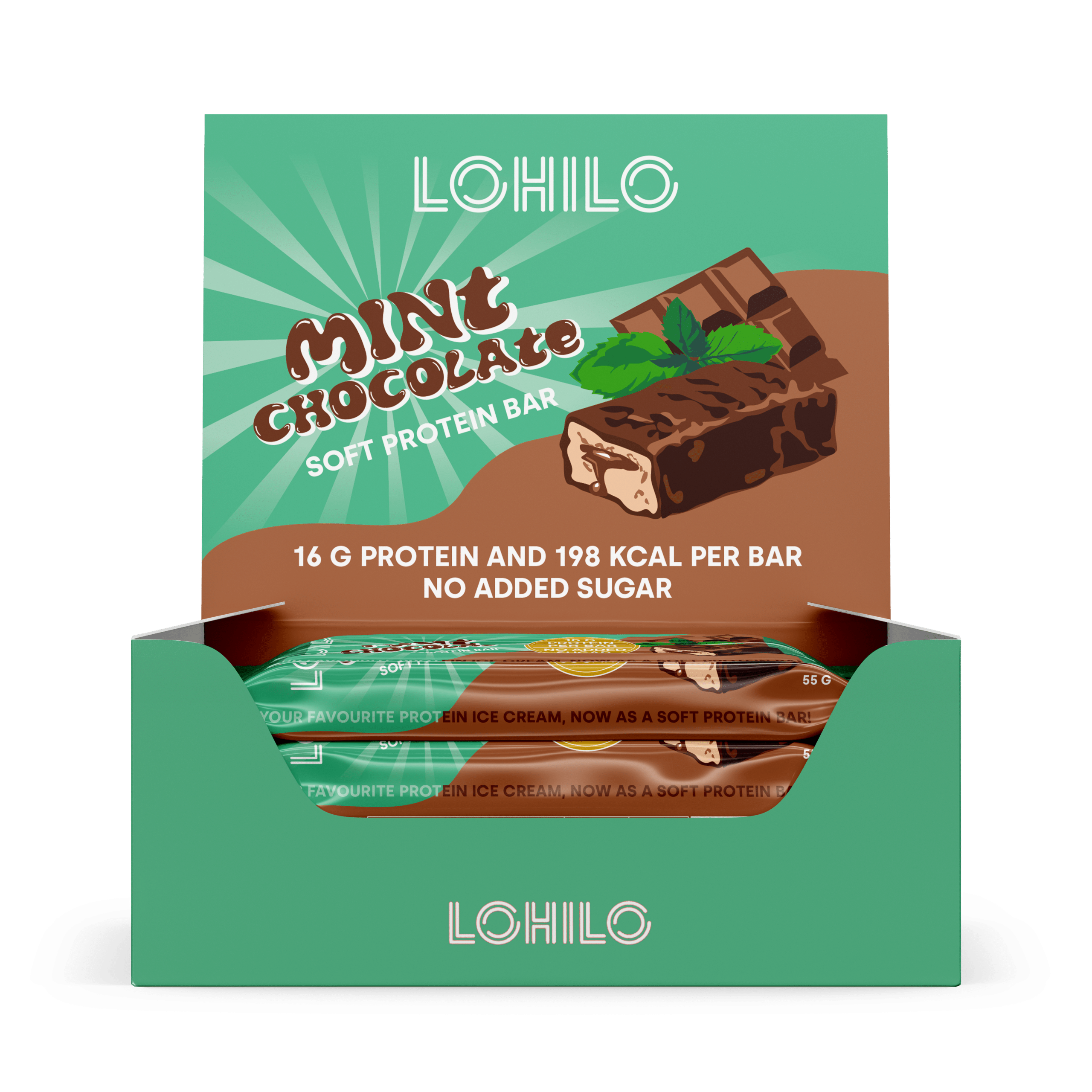 Lohilo Mint Chocolate Chip (12x55g) – Proteinbar med mynte & chokolade | Højt proteinindhold