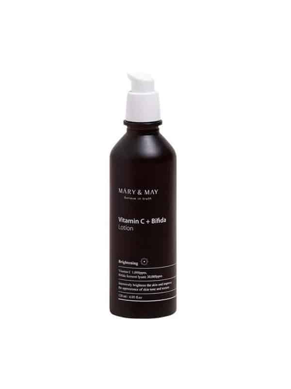 Mary&May Vitamin C + Bifida Lotion er en let, fugtgivende lotion, der kombinerer 1.000 ppm vitamin C og 3% bifida ferment lysat for at forbedre hudens tone, struktur, elasticitet og fugtniveauer. Denne lotion er velegnet til alle hudtyper, herunder se
