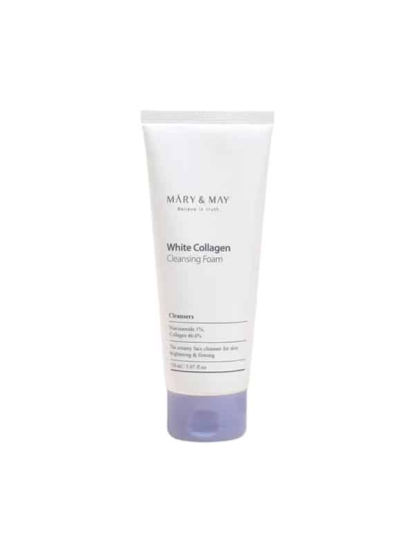 Mary & May White Collagen Cleansing Foam er en renseskum, der tilbyder en skånsom og effektiv rens. Den indeholder 46,6% kollagen og 1% niacinamid.
