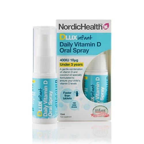 DLux Infant er en D-vitaminspray for babyer og småbørn. Sprayes inde i munden og optages direkte i blodbanen uden om fordøjelsessystemet. Sprayen er mikro emulgeret for hurtig og effektiv absorption i munden, hvilket giver en
