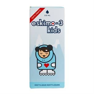 Eskio-3 Kids indeholder en kombination af omega-3-6-9 fedtsyrer samt D-vitamin.