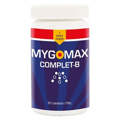 Mygomax Complete-B er et stærkt Vitamin-B kompleks. Thiamin og riboflavin er tilsat for et normalt energistofskifte.
