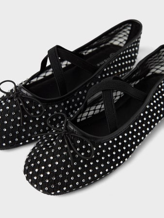 Et par virkelig fine ballerina sko fra Name it i lækker mesh med små nitter, en sløjfe og et elastikbånd henover vristen.